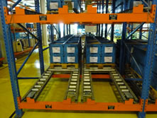 貨架特點 1、貨物由高的一端存入,滑至低端,從低端取出。貨物滑動過程中,滑道上設置有阻尼器,控制貨物滑行速度保持在安全范圍內。滑道出貨一端設置有分離器,搬運機械可順利取出第一板位置的貨物。 2、貨物遵循先進先出順序。貨架具有存儲密度高,且具有柔性配合功能。 3、適用于以托盤為載體的存儲作業,貨物堆棧整齊,為大件重物的存儲提供了較好的解決方案,倉儲空間利用率在75%以上,而且只需要一個進出貨通道; 4、重力式貨架非常環保,全部采用無動力形式,無能耗,噪音低,安全可靠,可滿負荷運作。